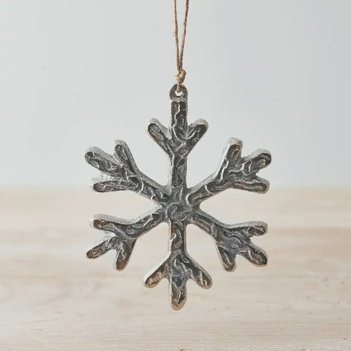 DalesIn stockAdd a festive addition to your home with this rustic inspired snowflake hanging decoration, in silver.