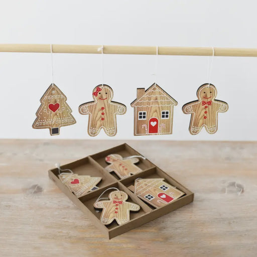 Pack of 8 Wooden Gingerbread Hanging Decorations