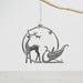 A wonderful metal ornament of a reindeer and sleigh in a metal ring. Complete with a jute string, this ornament is perfect for hanging at Christmas time 20cm